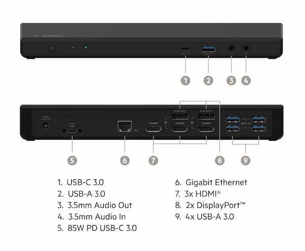 Home Electronics Computer Peripherals Docking Station Belkin INC007VFBK Universal USB-C Triple Display Dock - For MacBook, Windows & Chromebook - Black