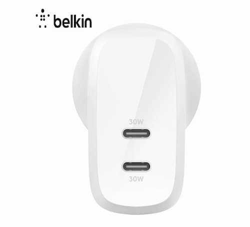 Home Networking Power Belkin (WCB010zbWH) Dual USB-C PD3.1 PPS Charger 60W - White