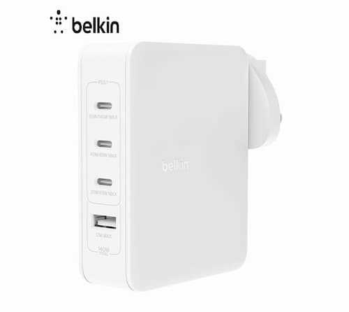 Home Networking Power Belkin WCH014myWH BoostCharge Pro 140W GaN Wall Charger | 4-Port Fast Charging USB-C Power Adapter