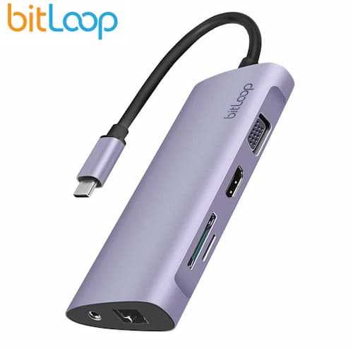 Home Networking USB Hubs BitLoop CPD8 11-Ports USB-C Hub with 4K HDMI, VGA, 3.5mm Audio, Gigabit Ethernet & SD/ MicroSD Reader (Grey)
