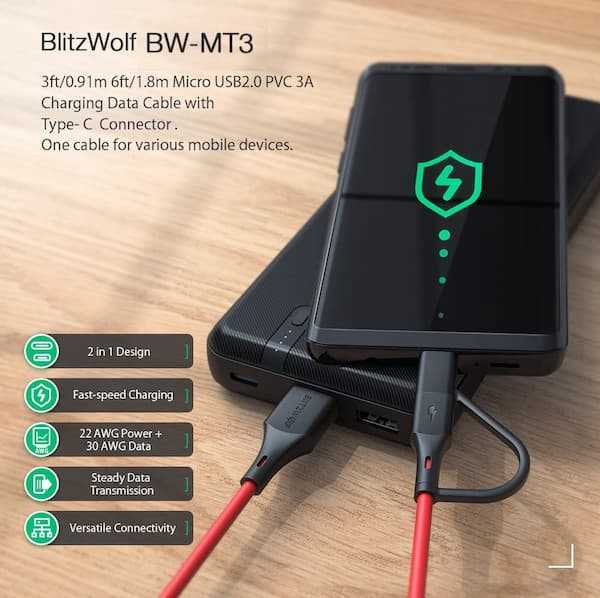 Home Networking Power Blitzwolf BW-MT3 - 2 In 1 Cable - Type C Plus Micro USB Cable