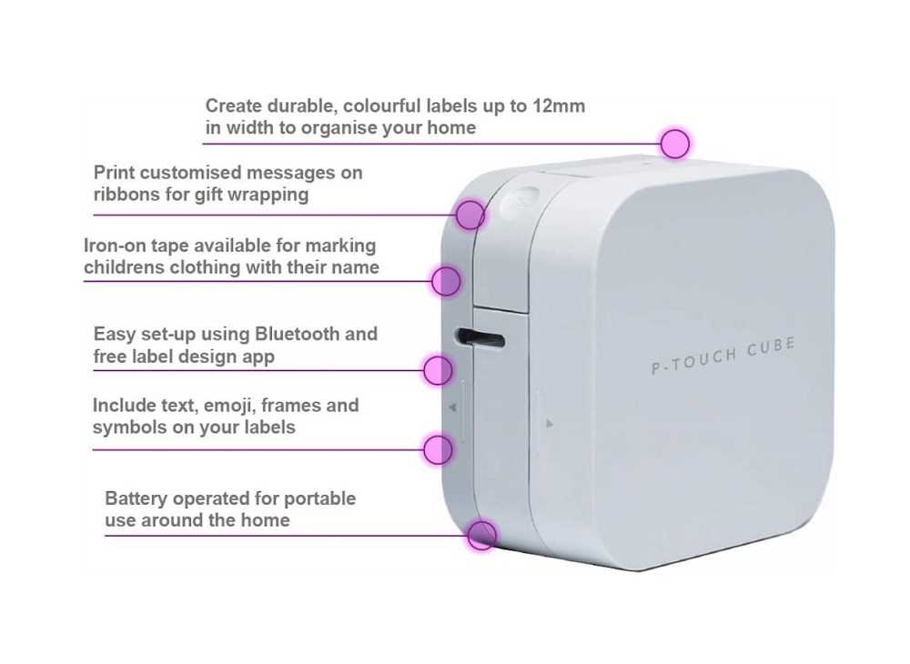 Home Copper Systems Cable Management Label Printers & Accessories Brother P-touch Cube Bluetooth Label Maker Printer (PT-P300BT) - White