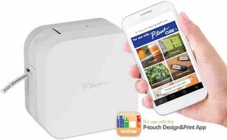 Home Copper Systems Cable Management Label Printers & Accessories Brother P-Touch Cube PT-P300BT Smartphone Label Maker, Bluetooth Wireless Technology Labeler Printer