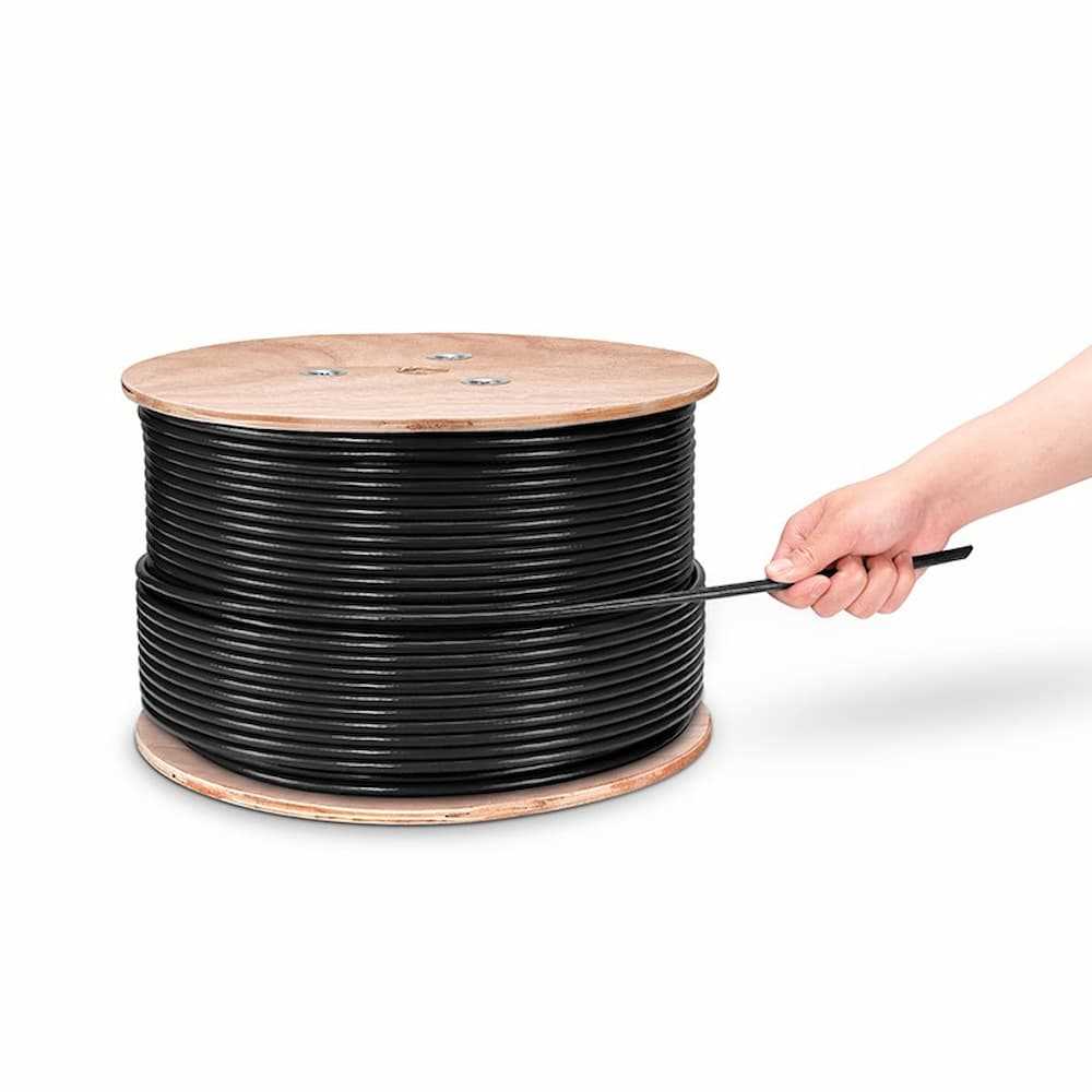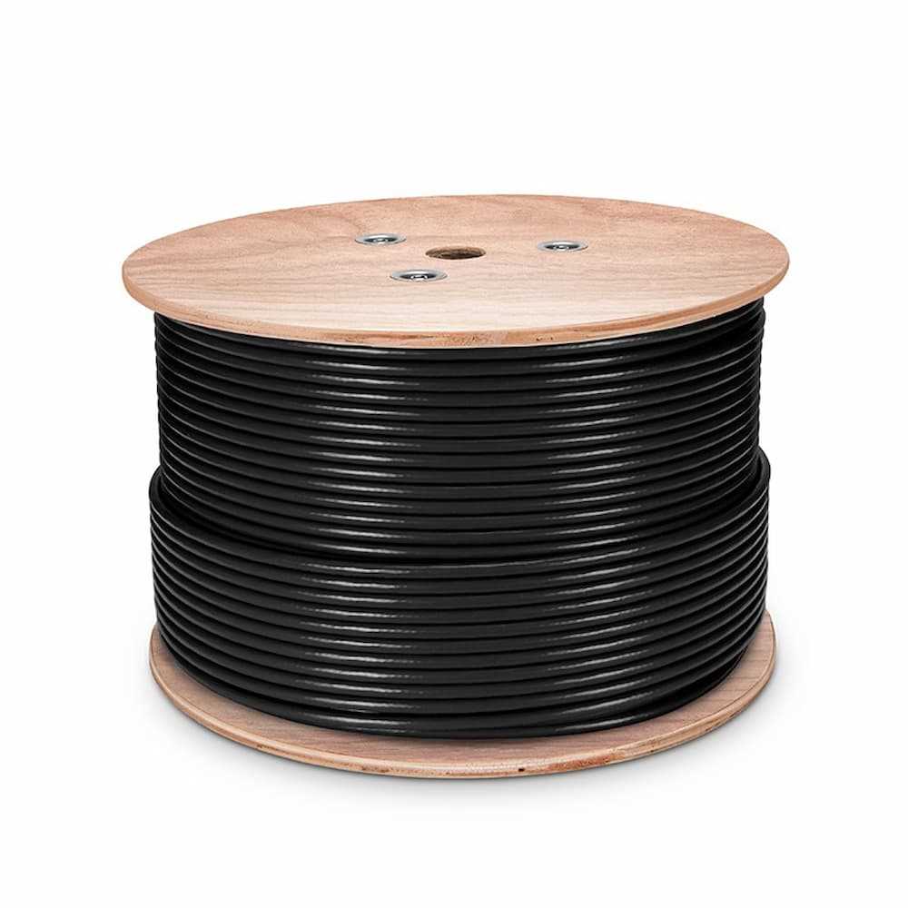 Home Networking Power Cat5e Outdoor Direct Burial UV Rated PVC and LDPE Double Jackets Bulk Ethernet Cable - 1000ft (305m) - Black