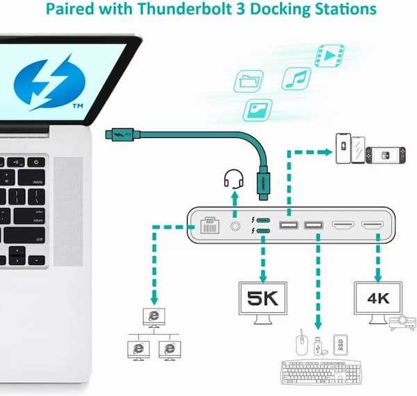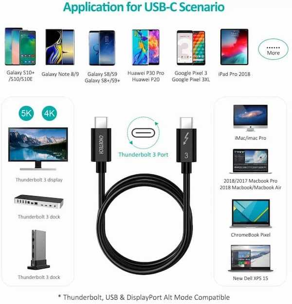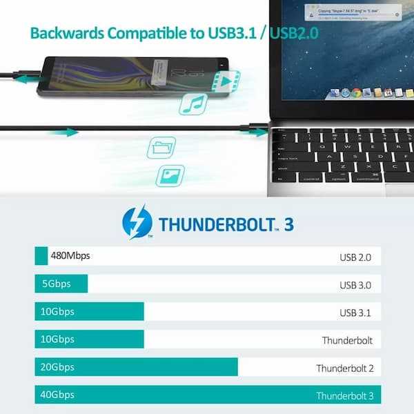 Home Networking Power CHOETECH Thunderbolt 3 Certified Thunderbolt Cable 0.8m 40Gbps/100W Charging, USB-C Compatible with MacBook Pro