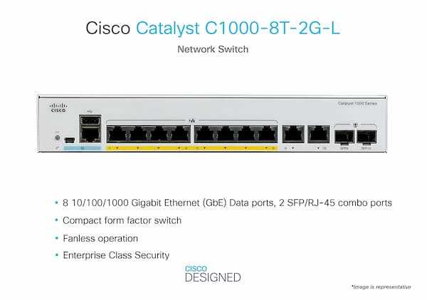 Home Networking Network Switches Cisco C1000-8T-2G-L Catalyst 1000 Switch | 8-Port Gigabit Ethernet | 2x1G SFP Uplinks