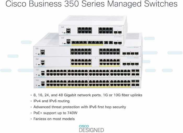 Home Networking Network Switches Cisco CBS350 16 Port Gigabit Managed Switch, 2x1G SFP, Business Network Switch - White