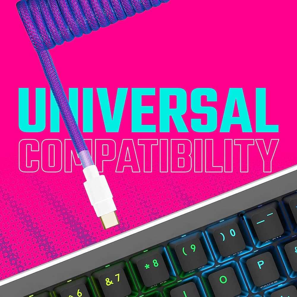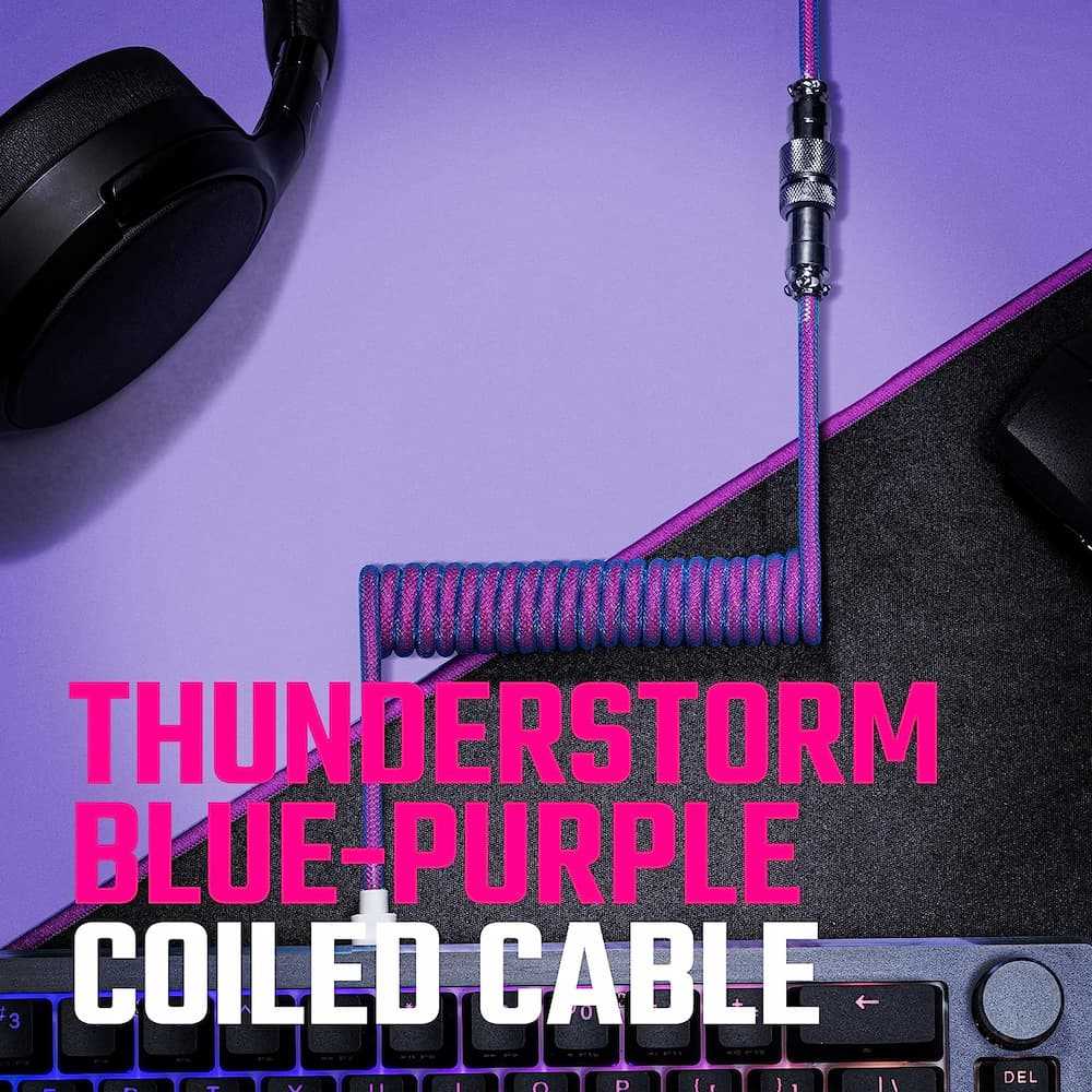Home Networking Power Cooler Master KB-CLZ1 Coiled Keyboard Cable With Detachable Metal Aviator Connector, Flexible Reinforced-Braided Nylon USB-A to USB Type-C (Blue-Purpl...