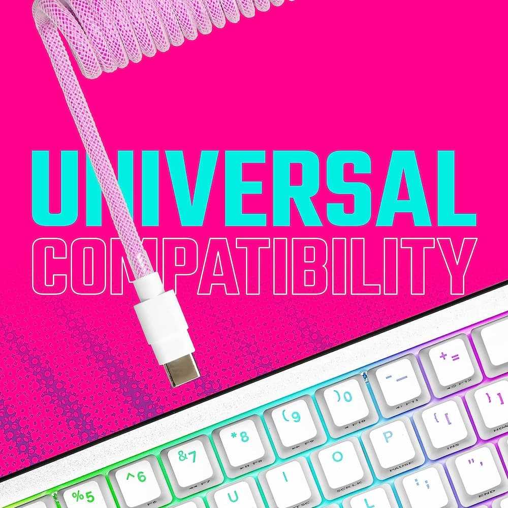Home Networking Power Cooler Master KB-CMZ1 Coiled Keyboard Cable With Detachable Metal Aviator Connector, Flexible Reinforced-Braided Nylon USB-A to USB Type-C (Magenta)