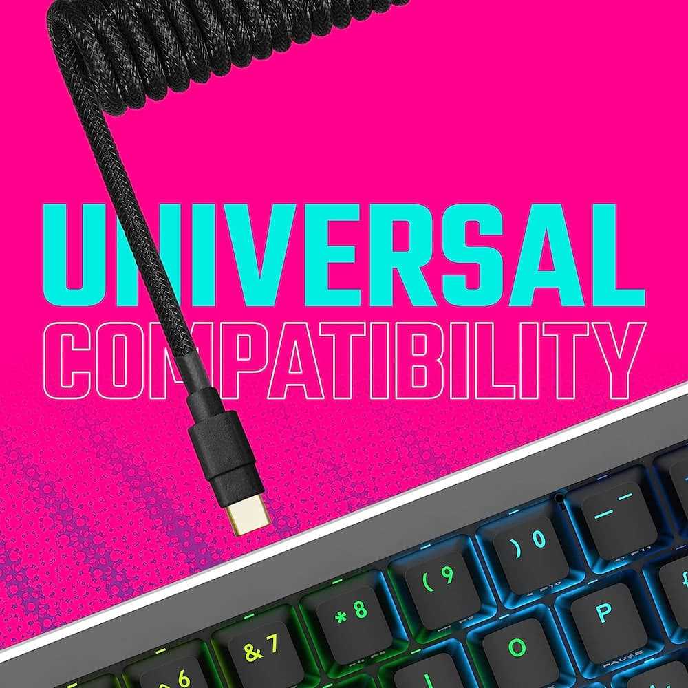 Home Networking Power Cooler Master KB-CWZ1 Coiled Keyboard Cable With Detachable Metal Aviator Connector And Flexible Reinforced-Braided USB-A to USB Type-C Nylon Cable