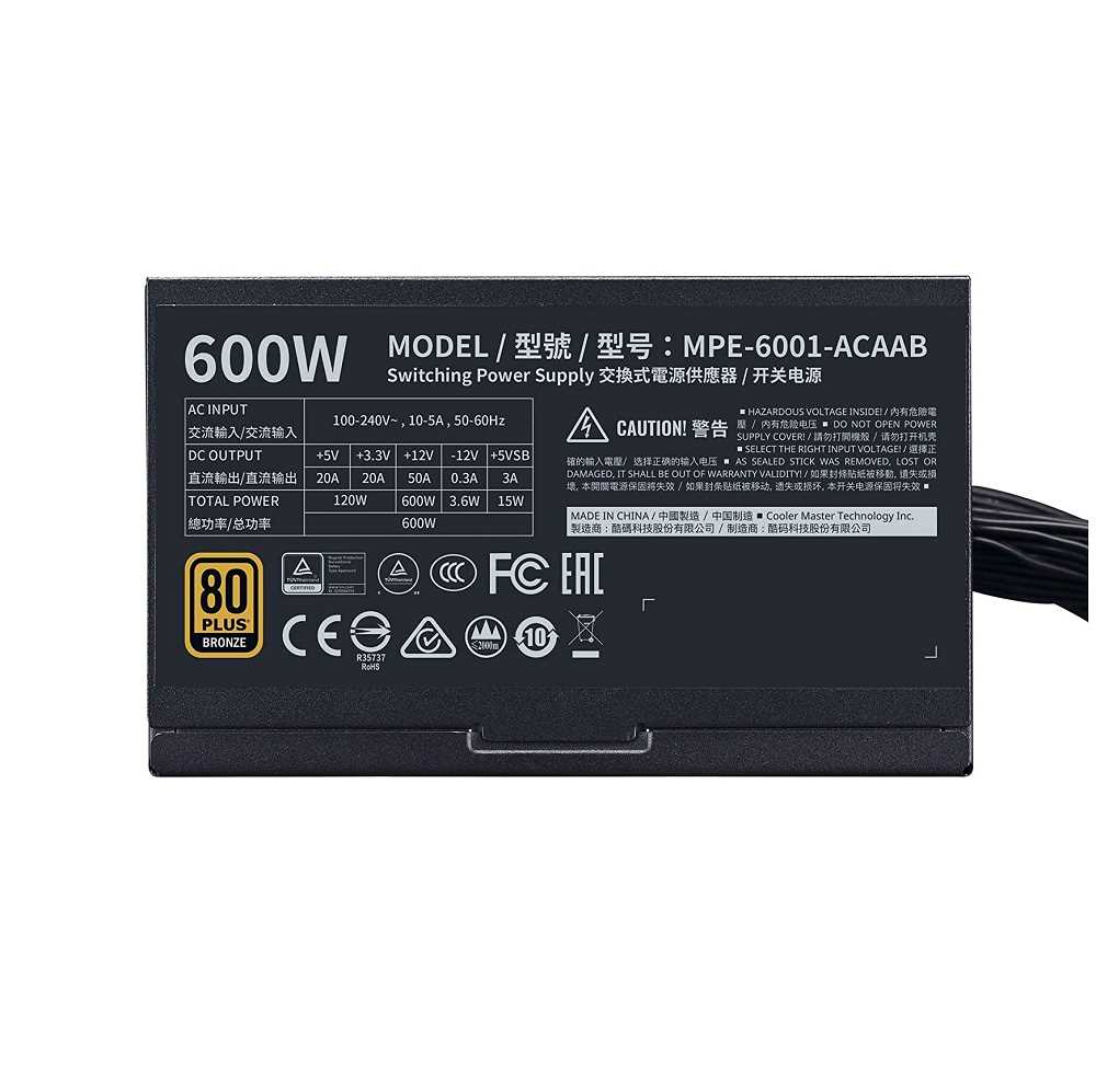 Home Networking Power Cooler Master MPE-6001-ACAAB-UK Bronze-v2 600W 80 Plus PC Power Supply (Black)