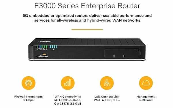 The Cradlepoint E3000 Enterprise Branch Router is a high-performance networking solution designed for branch offices, retail locations, and distributed enterprises across Singapore and the APAC region.