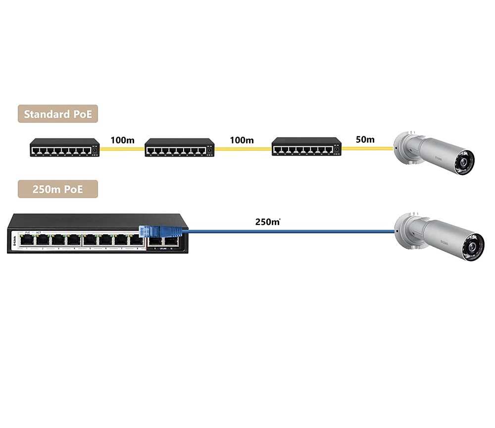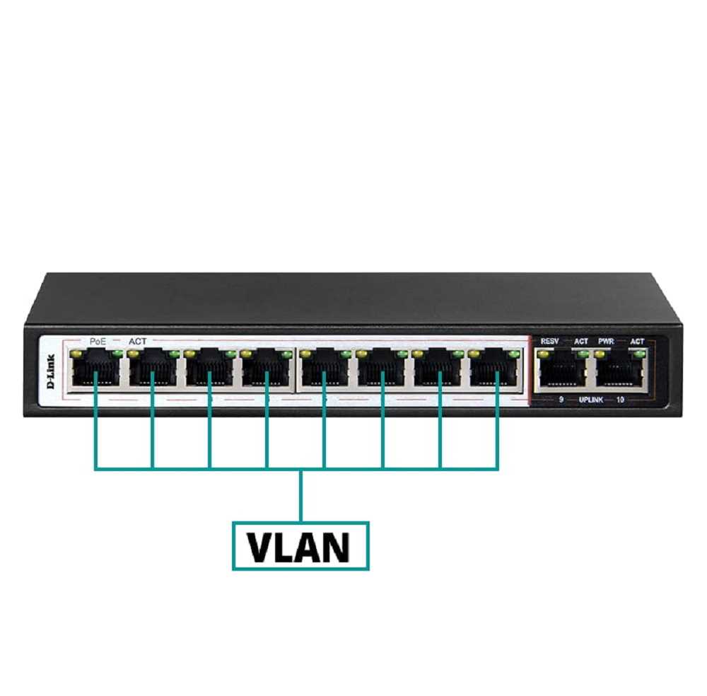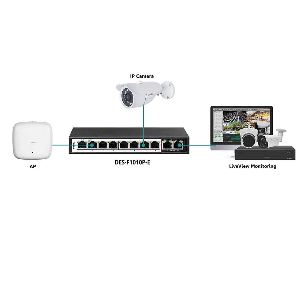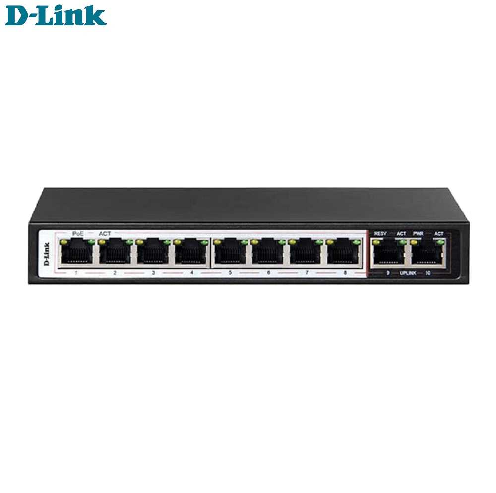 Home Networking Network Switches D-Link DES-F1010P-E 250M 10-Port Fast Ethernet Switch with 8 POE Ports & 2 Uplink Ports (Black)