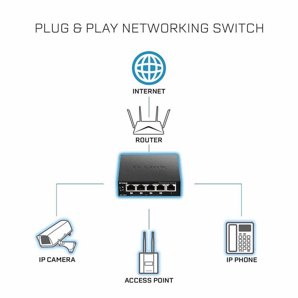Home Networking Media Converters, Extenders D-Link DGS-F1005P-E |60W|250M 4-Port Gigabit PoE Switch|1 Uplink Gigabit Ports| Power Budget (Black)