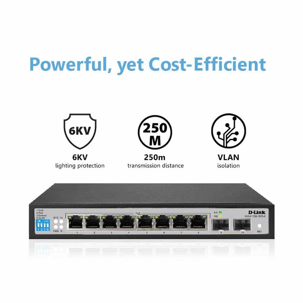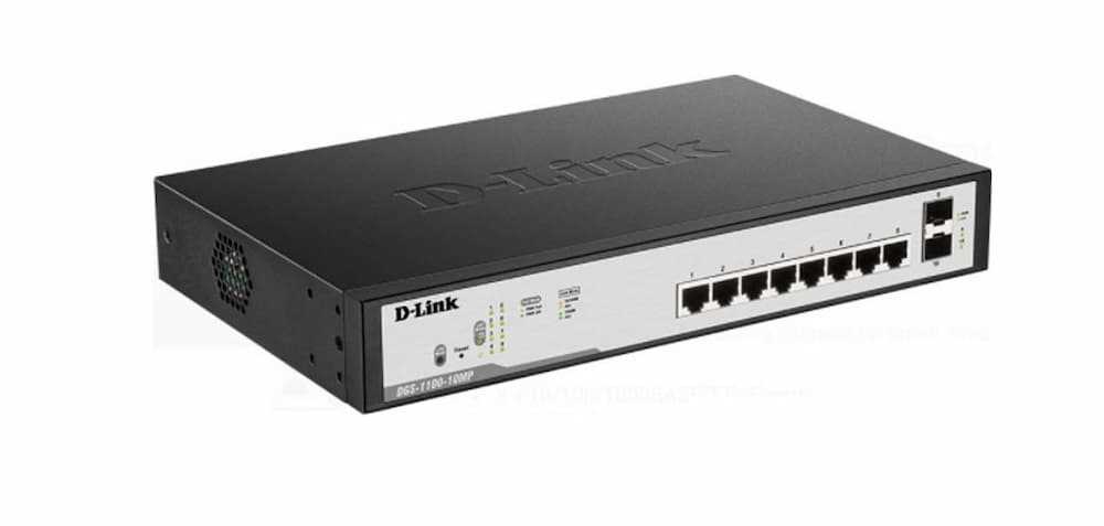 Home Networking Media Converters, Extenders D-Link DGS-F1100-10PS|96W |250M 8-Port Gigabit PoE Switch with 2 SFP Ports| Power Budget (Black)