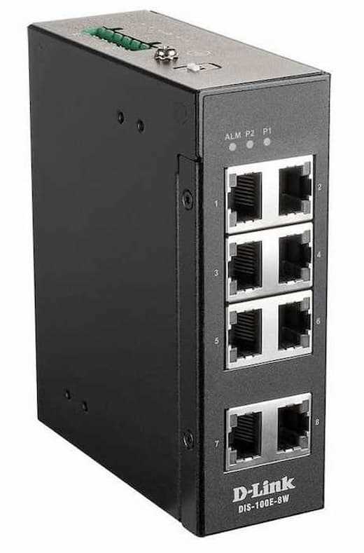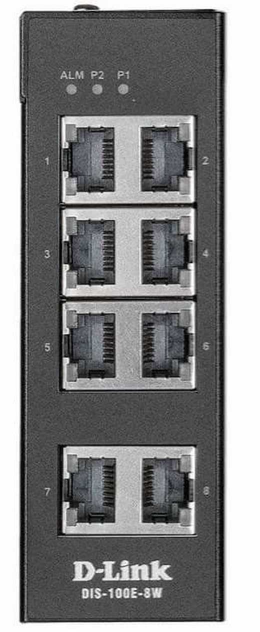 Home Networking Network Switches D-Link DIS-100G-8W 6-port 1GBASE-T PoE and 1-port SFP DIN-Rail Unmanaged Industrial Switch
