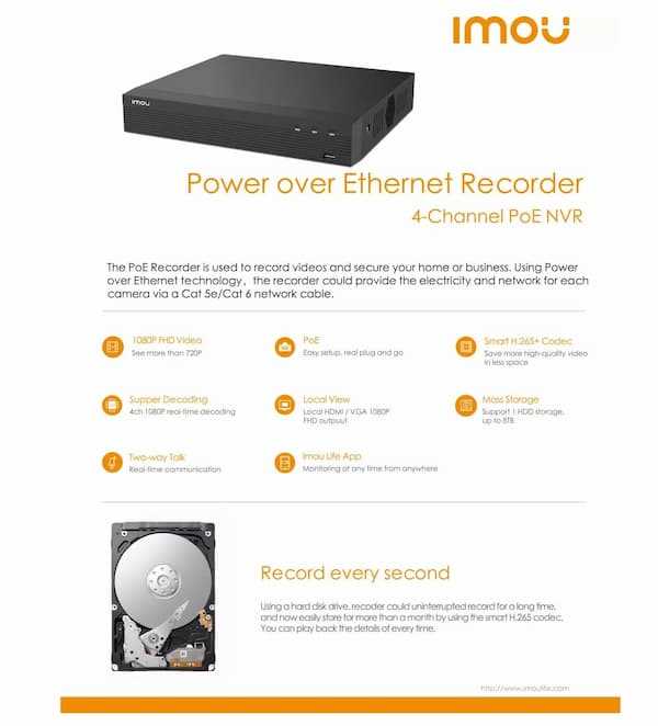 Home Networking Cameras & Surveillance Dahua Imou POE NVR 4CH Power Over Ethernet Recorder 1080P FHD Video 4CH Supper Decoding Up To 8TB Storage Two-way Talk Cat 6 Net