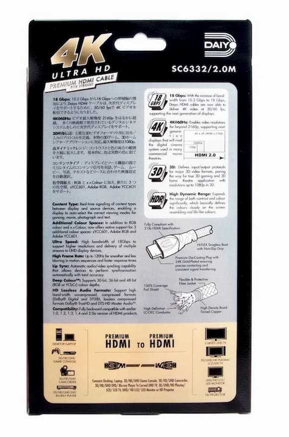 Home Fiber Optic Cables Accessories Daiyo SC 6332 HDMI 2.0 4K Premium Cable 2 Meter High-Speed Ultra HD AV Cable