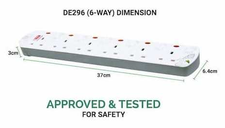 Home Testers and Tools Fiber Testers Power Meters Hot Daiyo DE296 6-Way Universal Extension Socket With 2M Cable & Surge Protection