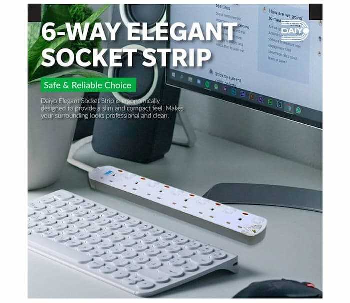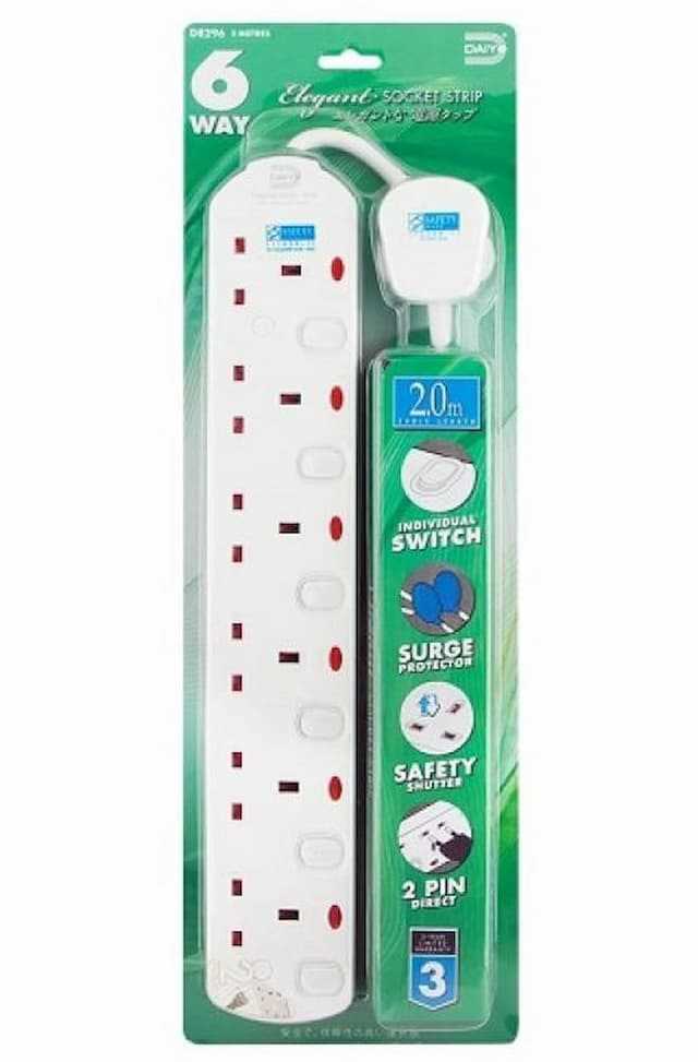Home Testers and Tools Fiber Testers Power Meters Hot Daiyo 6 Way Elegant Socket Strip Cable 2 Meter - DE 296-2M