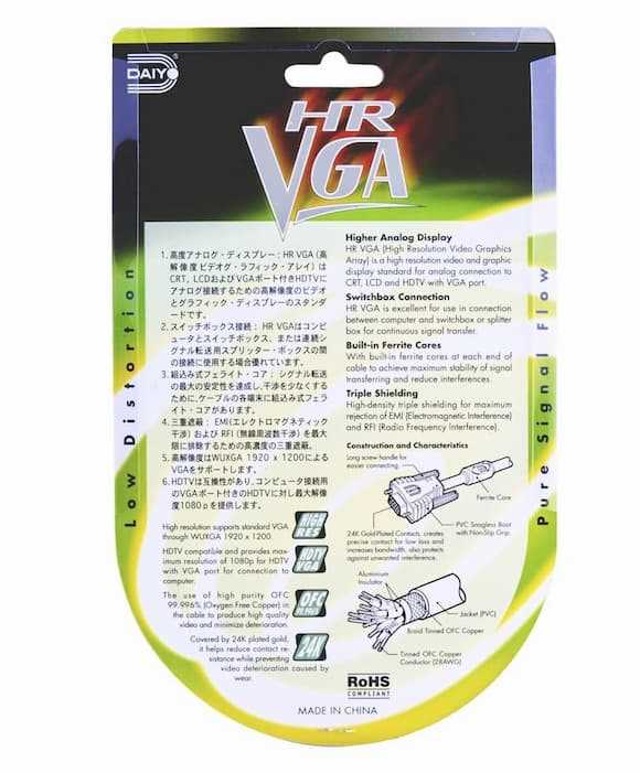 Home Fiber Optic Cables Accessories Daiyo CP-2535 High Resolution VGA Cable 5 Meter with Ferrite Core for Stable Display