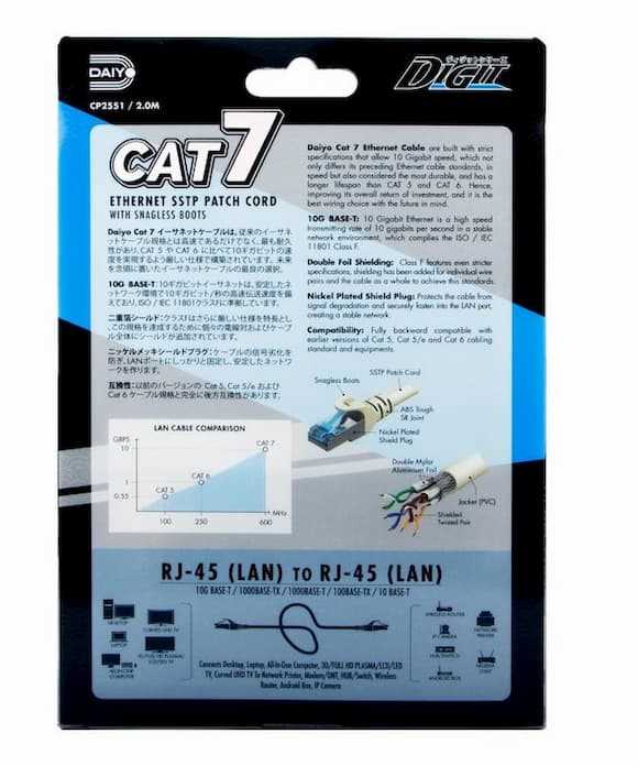 Home Copper Systems Copper Patch Cords Daiyo CP-2551 Cat7 SSTP Ethernet Patch Cord 2 Meter High-Speed Shielded LAN Cable
