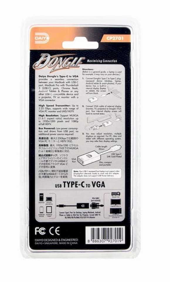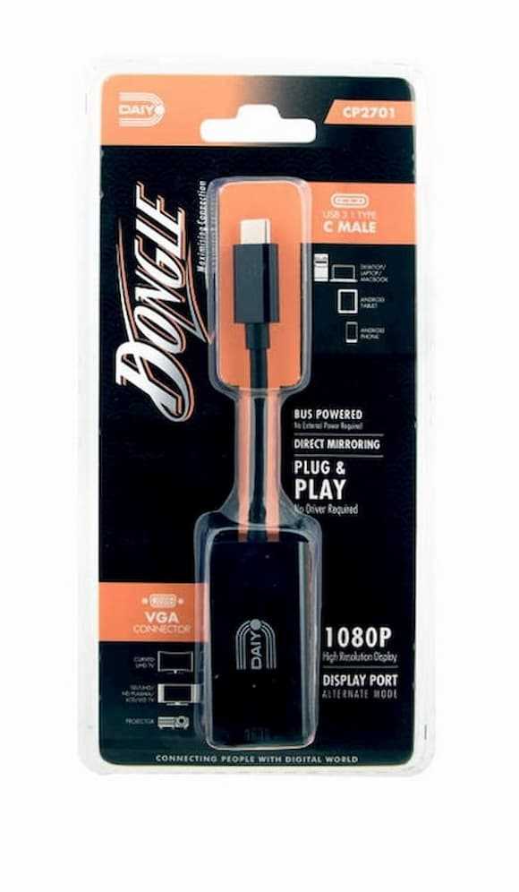 Home Networking Network Adapter Daiyo CP-2701 USB Type-C to VGA Dongle Compact Display Adapter