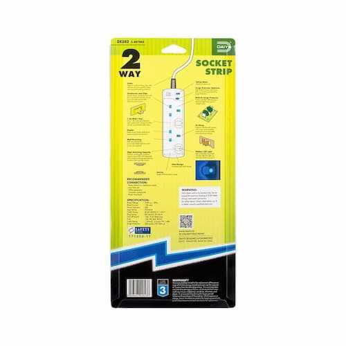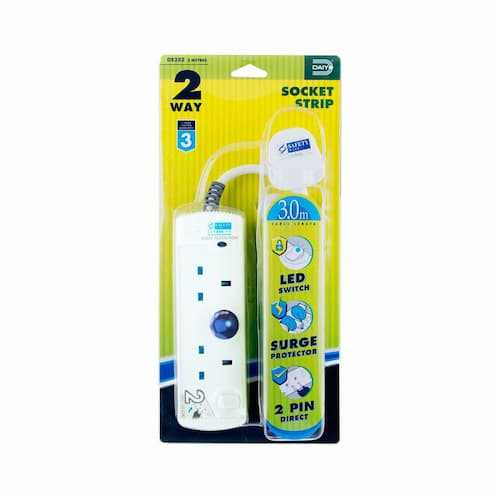 Home Networking Smart Power Socket Daiyo DE 382 LED 2 Way Extension Socket Strip with Surge- 3M | 6M