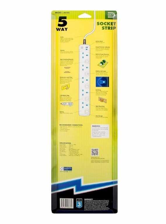 Home Networking Smart Power Socket Daiyo DE 385 LED 5 Way Extension Socket Strip with Surge 6M