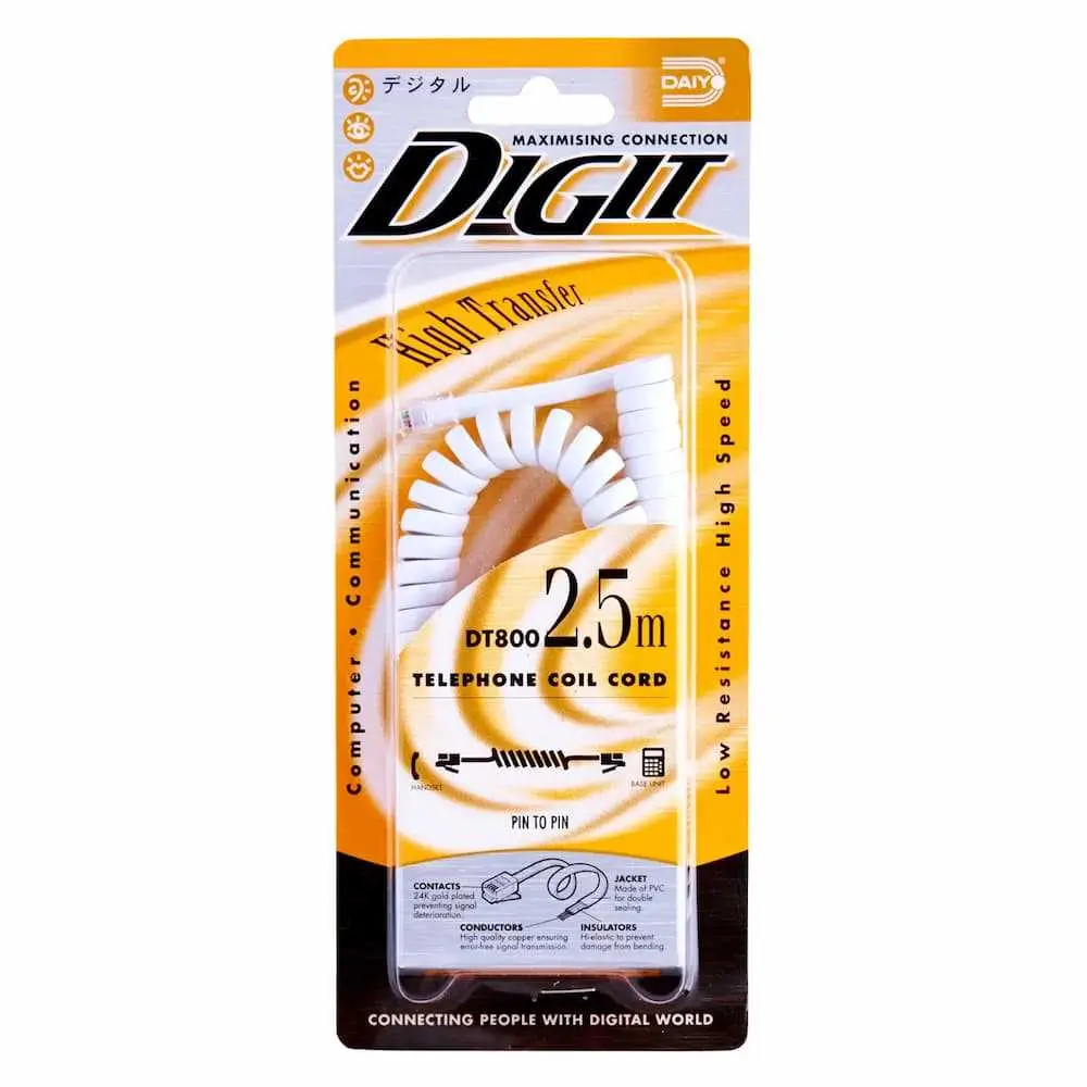 Home Networking Conferencing, Phones Daiyo DT 800W Telephone Coil Cord 2.5M, 4 Pin 4 Core - White