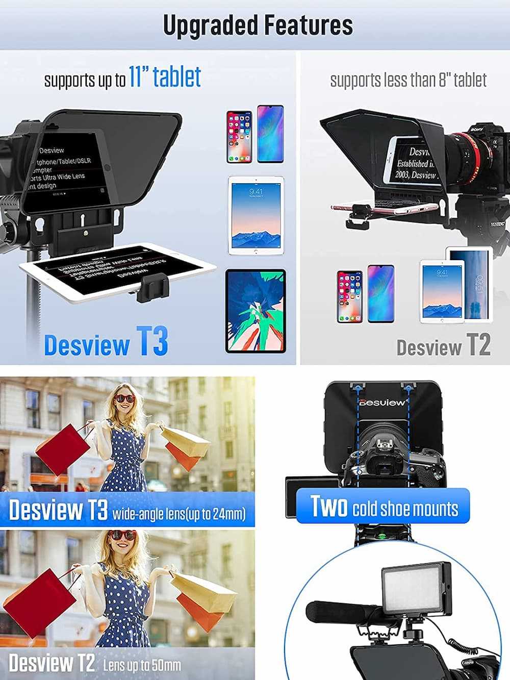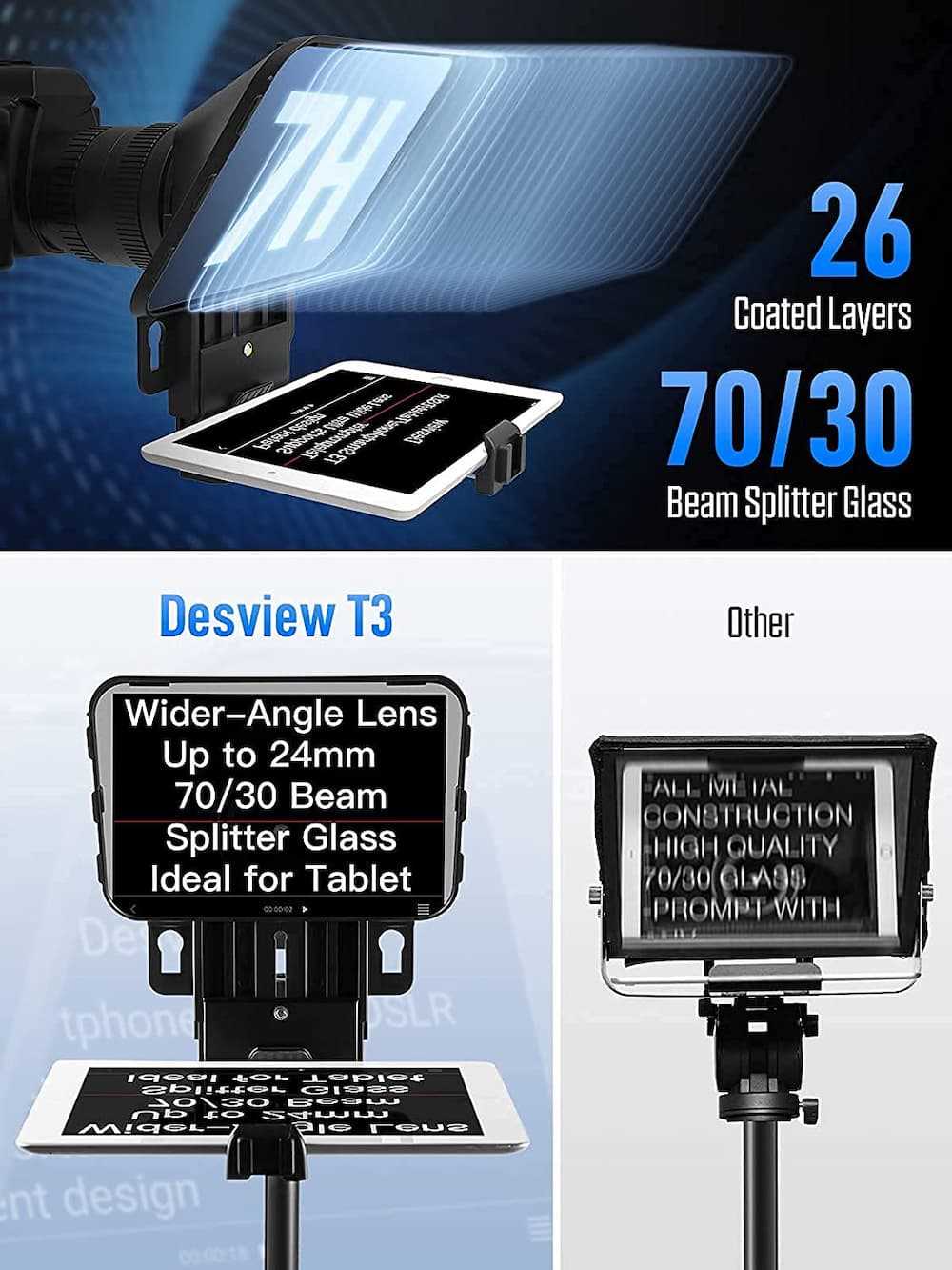 Home Networking Cameras & Surveillance Accessories Desview T3 Third Generation Teleprompter For Cellphone/Tablet/DSLR (Black)