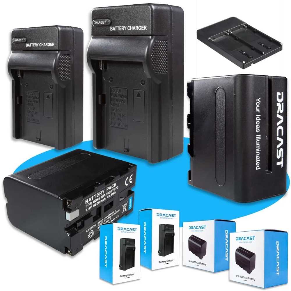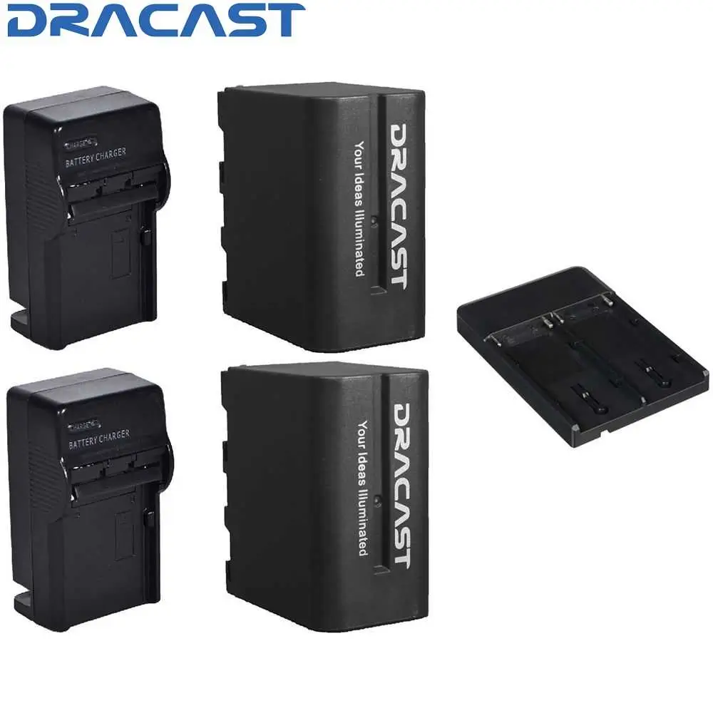 Home Networking Cameras & Surveillance Accessories Dracast DRBK2NPFBADP 2 x NP-F 6600mAh Batteries with Charger & V-Mount to NPF Converter Kit (Black)