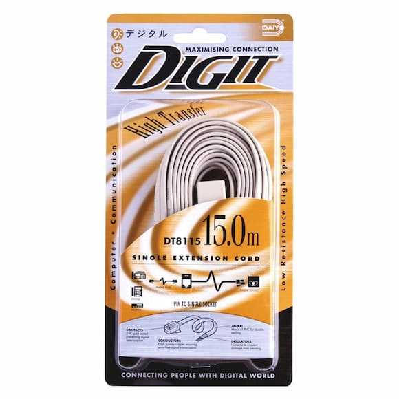 Home Fiber Optic Cables Accessories Daiyo DT 8115 Telephone Extension Cable 15 Meter RJ11 Plug to Socket Cord