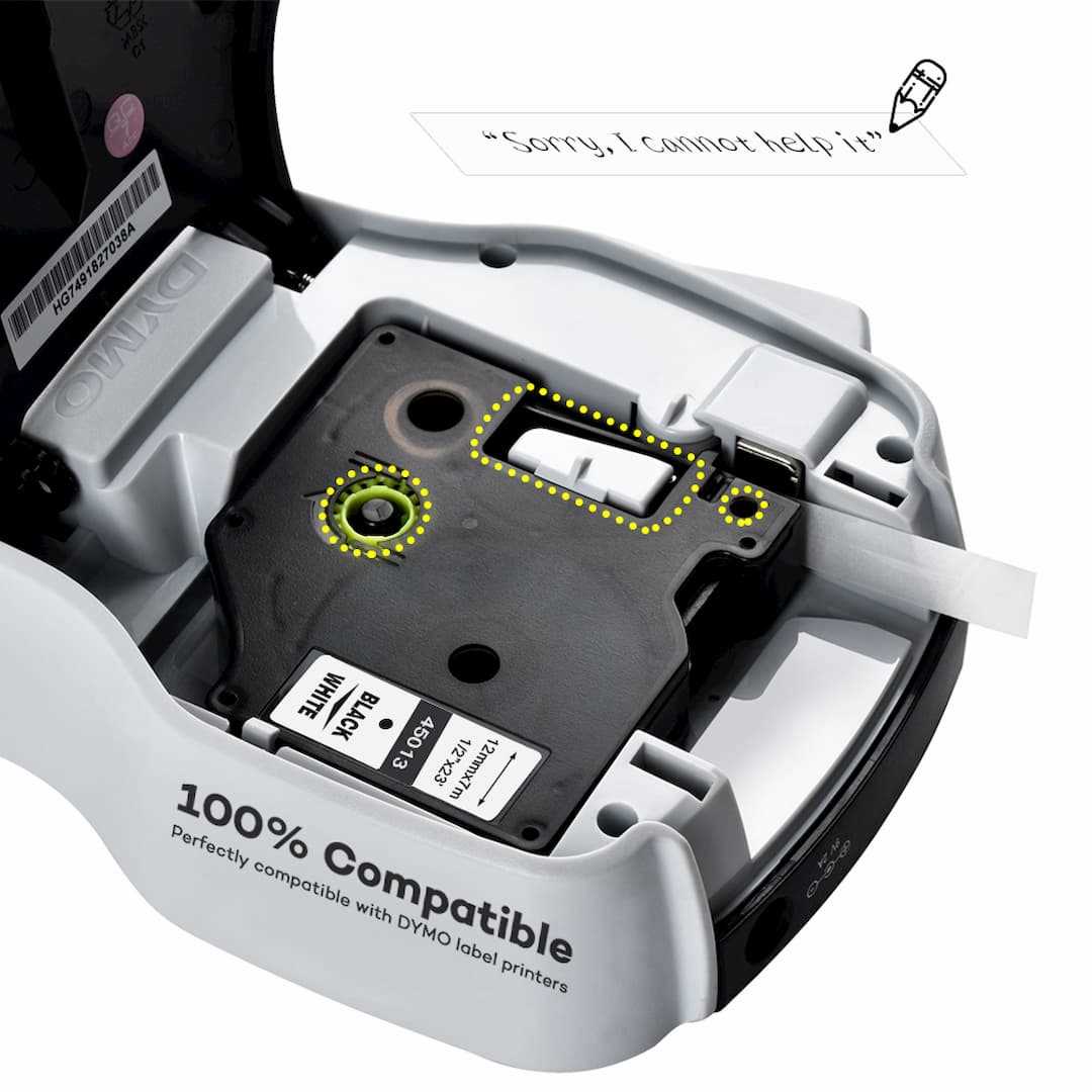 Home Copper Systems Cable Management Label Printers & Accessories DYMO D1 45013 12mm Laminated Label Tape Cassette Clear Black Print for DYMO Label Printers Durable Ribbon