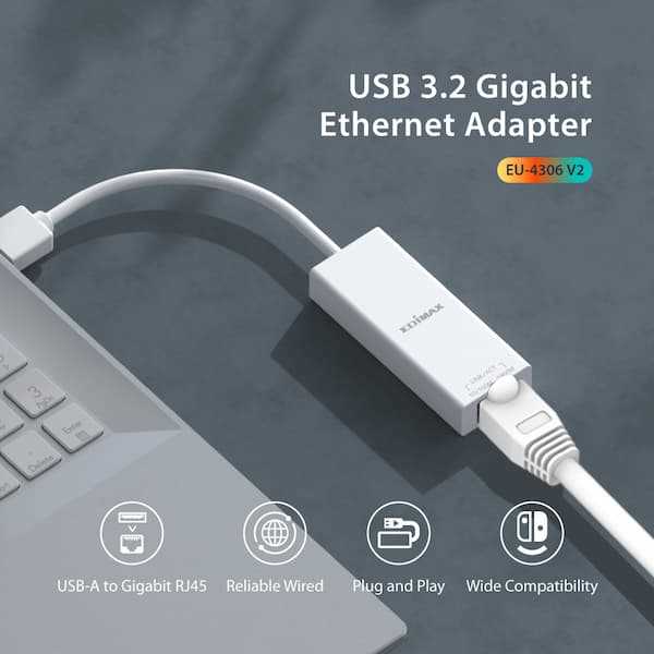 Home Electronics Adapters & Cables Edimax EU-4306 V2 USB-C to Gigabit Ethernet Adapter