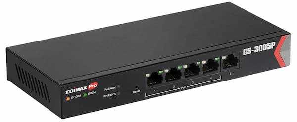 Home Networking Network Switches Edimax GS-3005P 5-Port Gigabit PoE+ Switch for CCTV & IP Devices | High-Power Metal Ethernet Switch