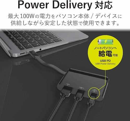 Home Networking USB Hubs Elecom DST-C06BK Docking Station USB-C HUB, PD, Type-C/ USB3.0/ HDMI For Charging & Data Transfer, Cable Storage (Black)