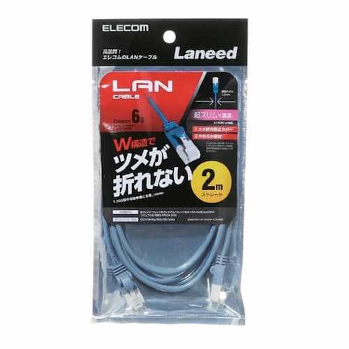 Home Fiber Optic Cables Accessories Elecom LD-GPST/BU20 Cat 6 Slim LAN Cable (2 Meter) - Blue
