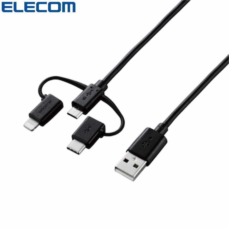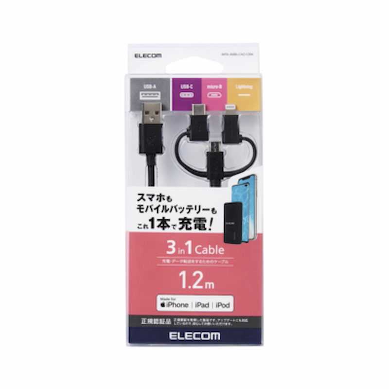 Home Fiber Optic Cables Fiber Pigtails Elecom MPA-Amblcad12 3-In-1 Charging Cable (Black/White)