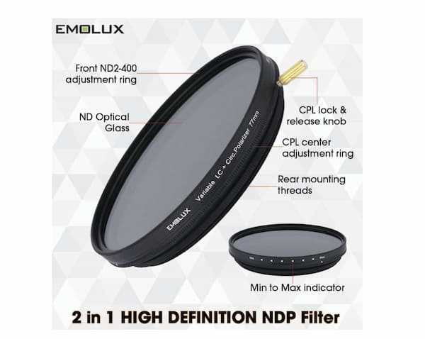 Home Networking Cameras & Surveillance Display & Control Emolux Digital 67mm COMBI HD 2 in 1 Variable Fader ND 2-400 Light Control + Circular Polarizer (CPL) Camera Lens Filter with polarizing lock for wide ...
