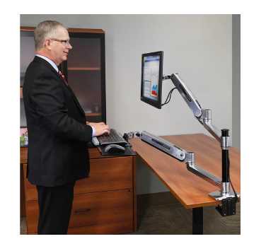 Ergotron Ergotron WorkFit-LX Standing Desk Mount System transforms a traditional desk into an ergonomic sit-stand workstation using a flexible monitor arm design. It allows smooth height adjustment and full monitor positioning, enabling users to alternate between sitting and standing throughout the workday.
