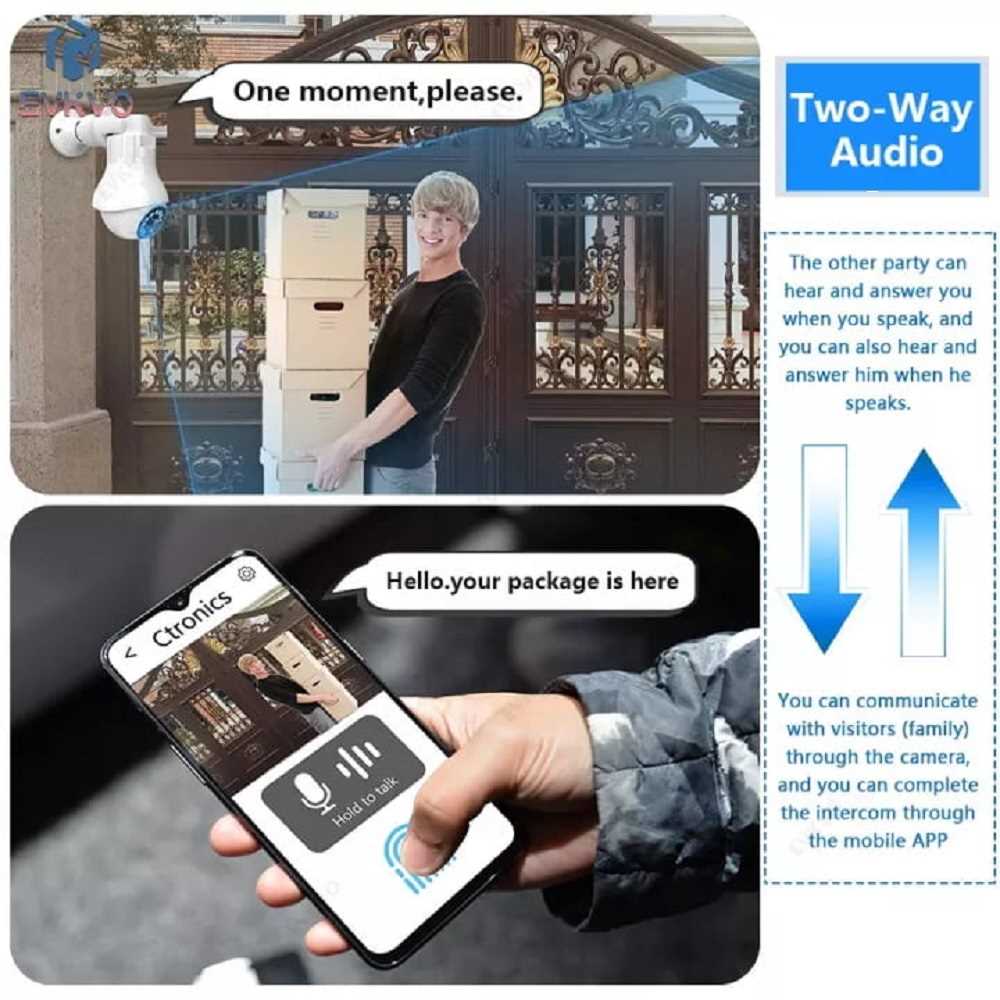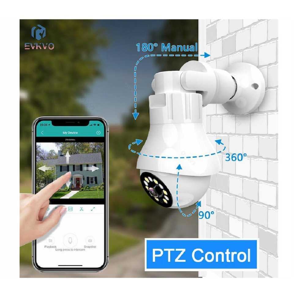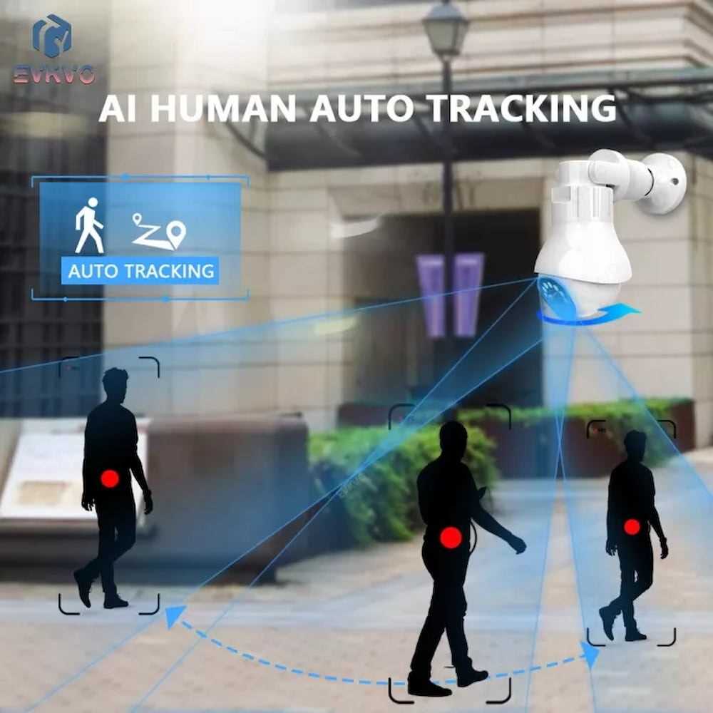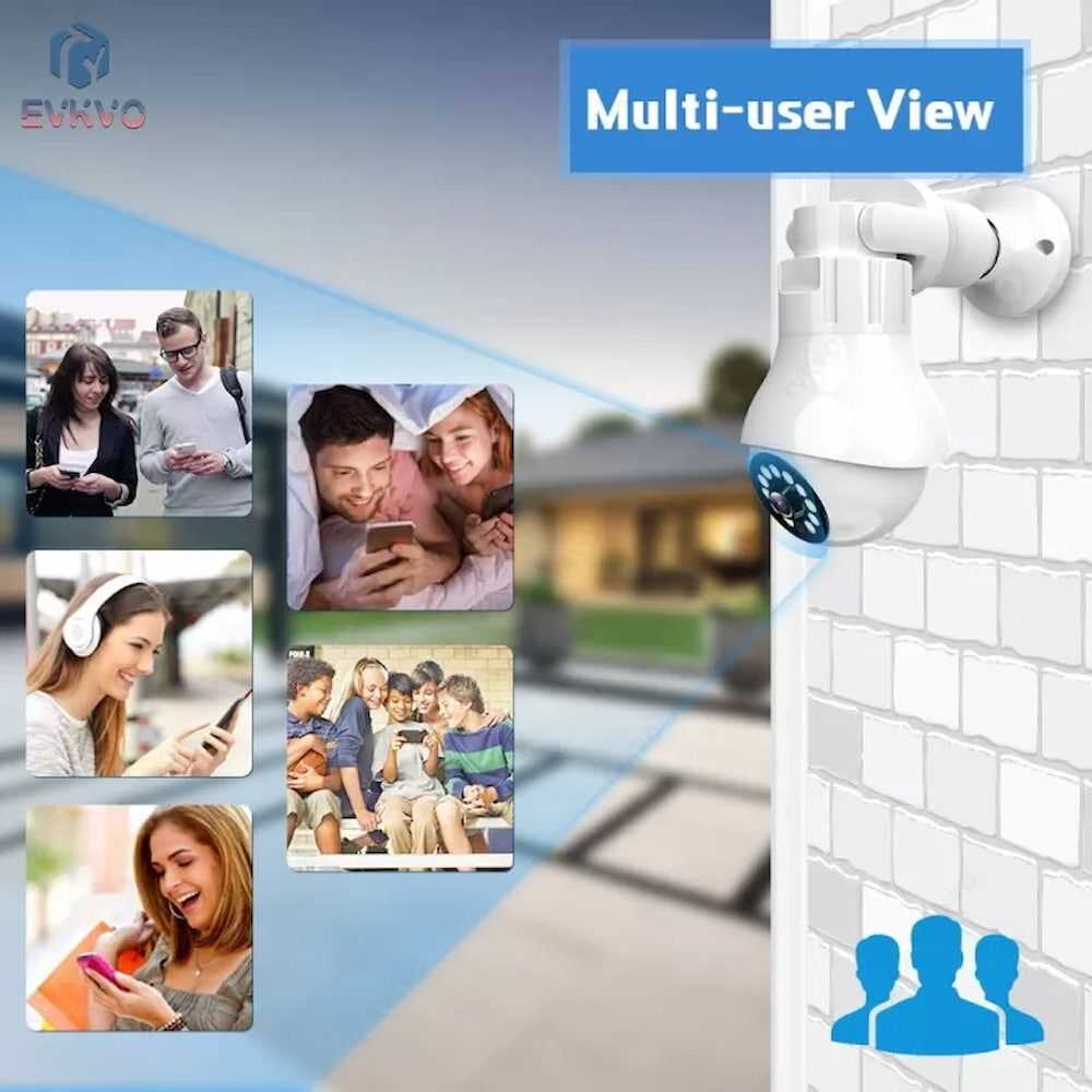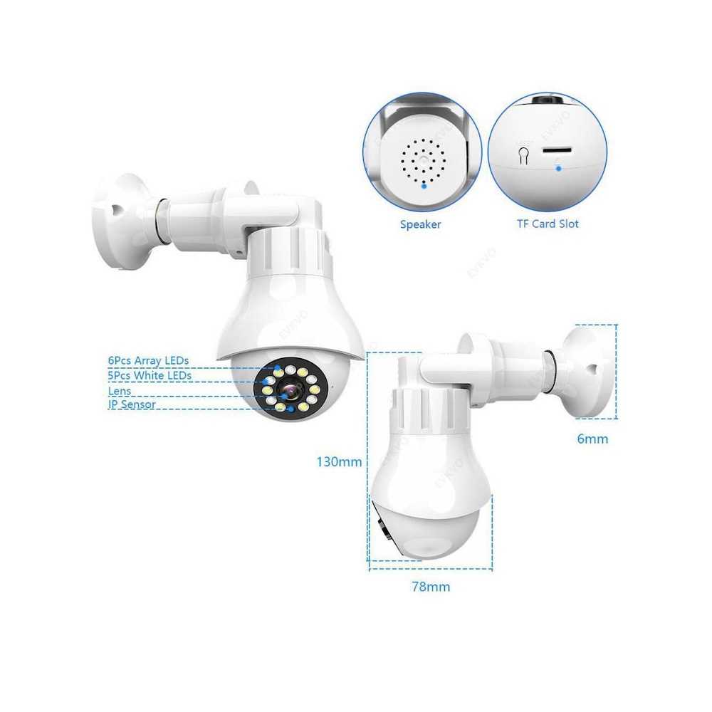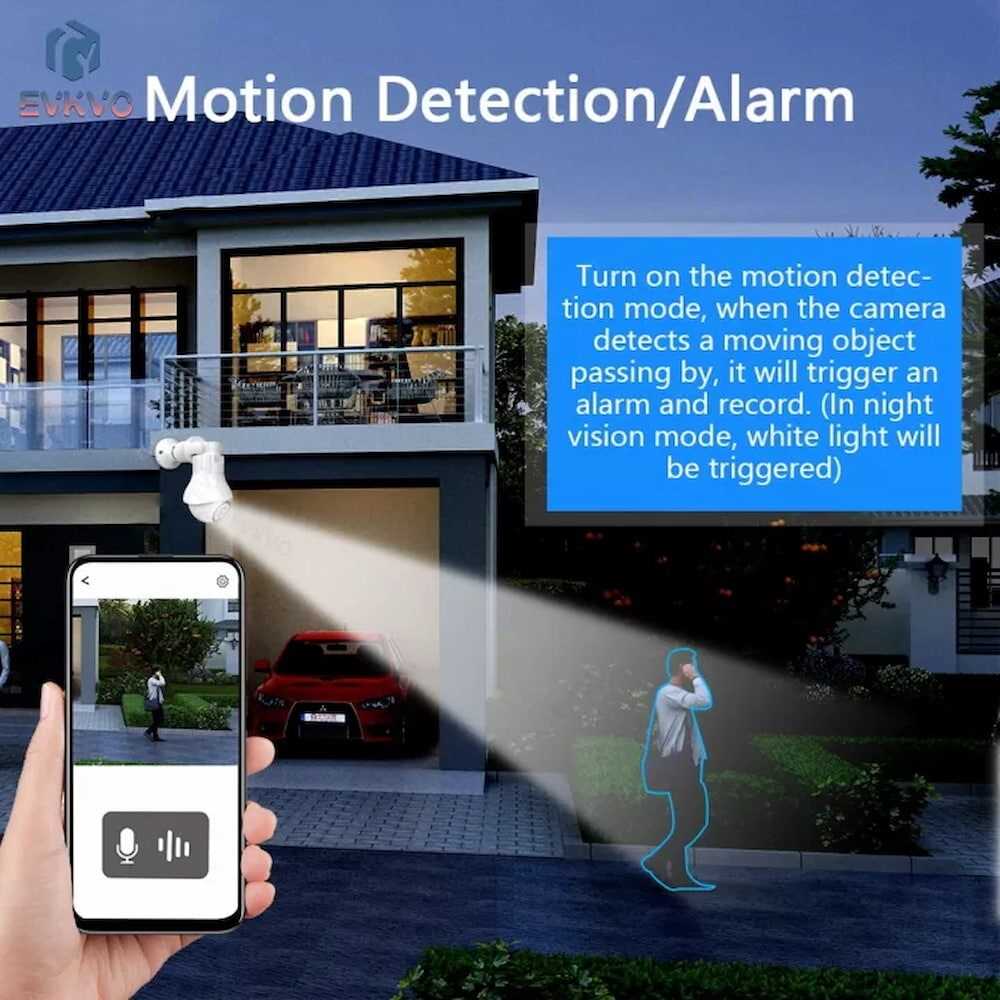 Home Networking Cameras & Surveillance EVKVO 4MP 360 Panoramic Wifi Camera CCTV 2 Way Audio Surveillance Fisheye Bulb CCTV Video Night Vision Wireless IP Camera (White)