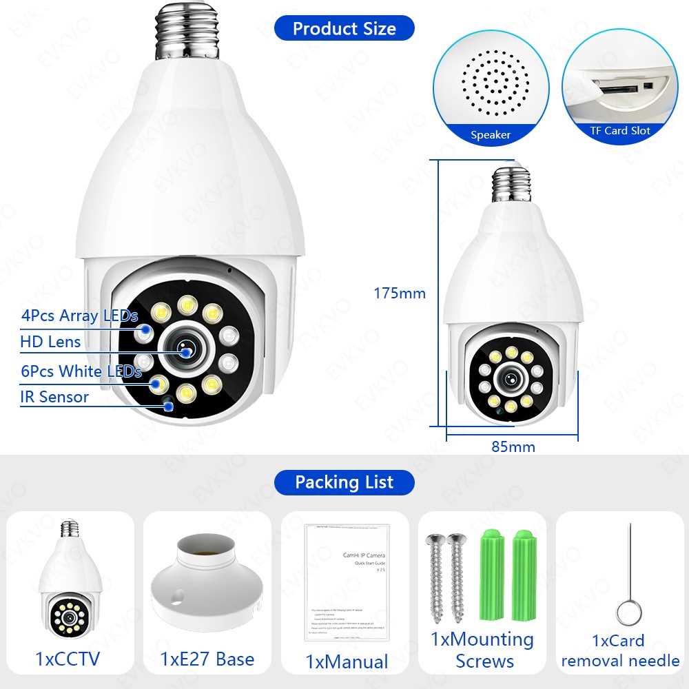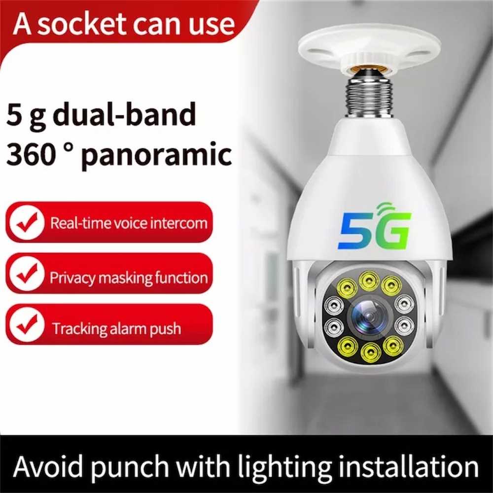Home Networking Cameras & Surveillance Evkvo 5G Wifi LED & IP Camera | 390eyes APP | CCTV Mini E27 Bulb Socket | White