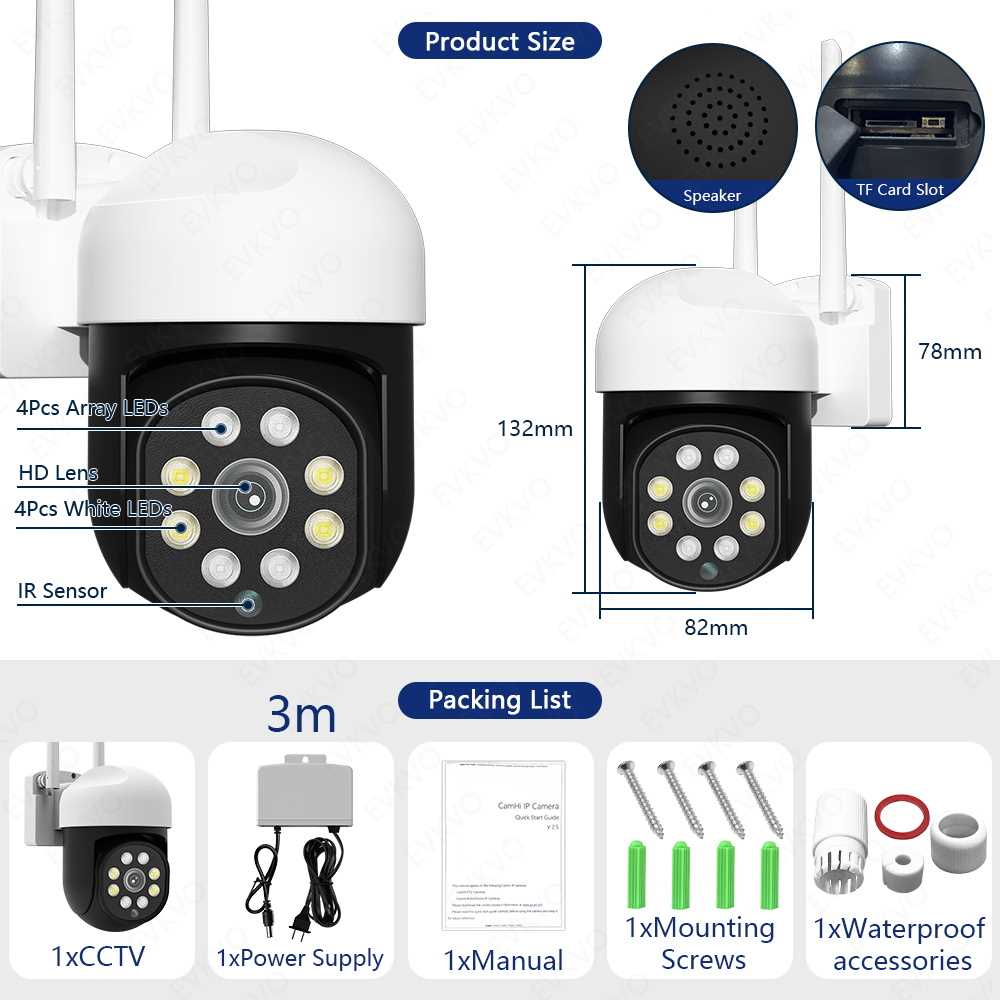 Home Networking Cameras & Surveillance EVKVO 5MP 5G WiFi Waterproof Human Detection Auto Tracking Surveillance Wireless Camera (White)