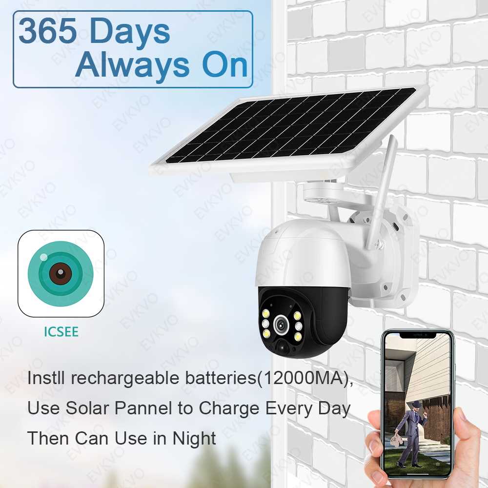 Home Networking Cameras & Surveillance Evkvo 5MP Pan Tilt Zoom Rechargeable Wireless Solar Powered Outdoor Wifi Camera (White)