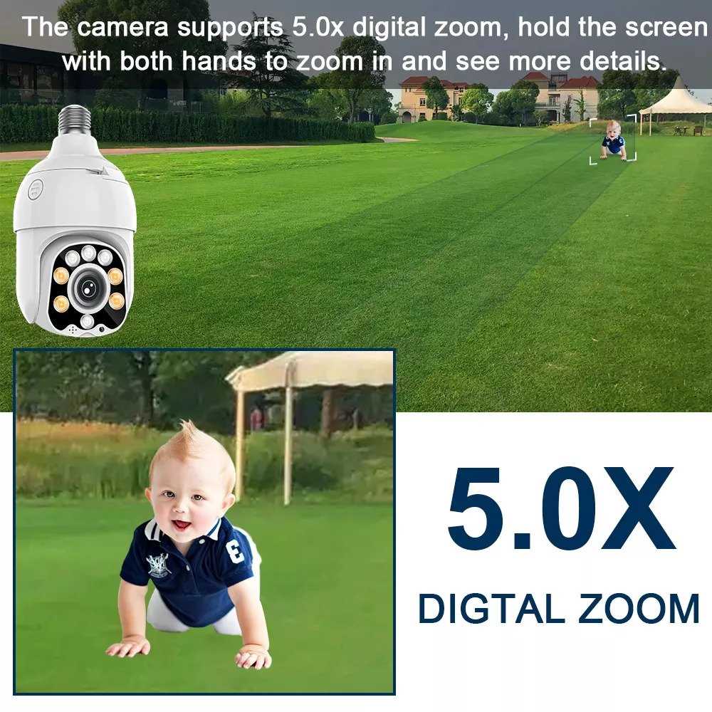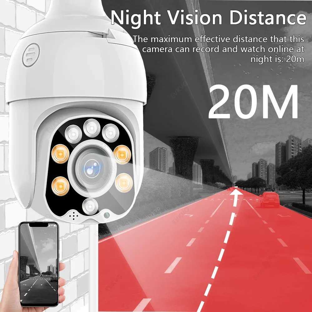 Home Networking Cameras & Surveillance Evkvo 5MP Wifi PTZ Lamp IP Camera With Waterproof Bulb - White