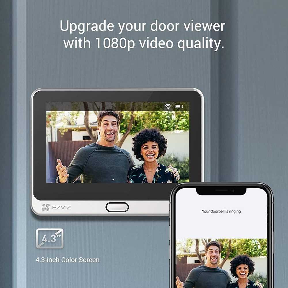 Home Networking Cameras & Surveillance EZVIZ CS-DP2C Peephole DoorBell Camera | 4.3 Inches Colour Screen Display | APP Viewing | Two-Way Audio | PIR Motion Detection | Metal Housing | Cloud...