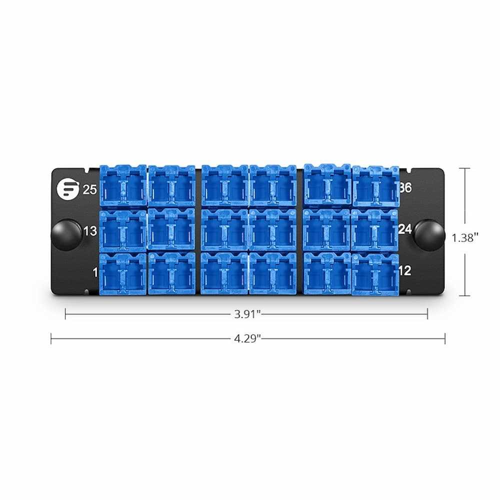 Home Networking Power FHD Fiber Adapter Panel With 36 Fibers OS2 Single Mode, 18 x Shuttered LC UPC Duplex Adapter(Blue)