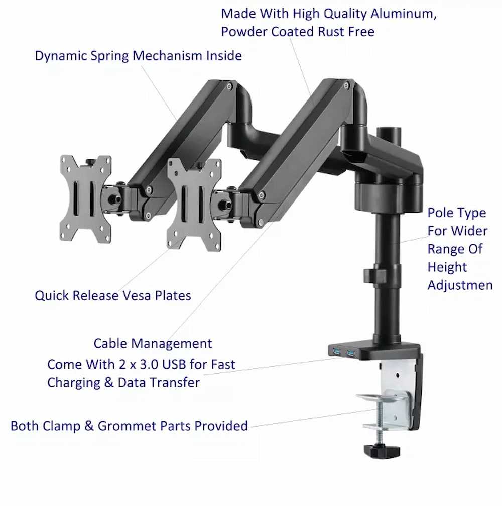 Home Copper Systems Cable Management Flight L26-202UD Dual Ergofly Pole Type Series Monitor Arm LCD Arm Monitor, Mount Vesa, Monitor Stand, Come With 2 x 3.0 USB Dynamic Spring Mechanism,...