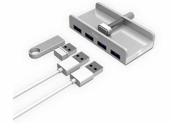 Home Networking USB Hubs Flujo AH-5 USB 3.0 Desk Clamp Adapter, Aluminum Premium 4-Port USB 3.0 Converter Portable Size Travel Charger Charging Adapter Station for iMac (1 USB...